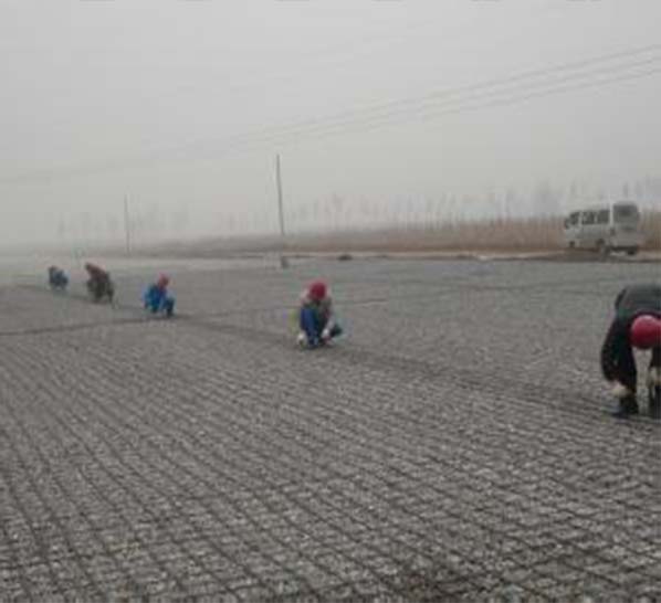 7、橋臺地基一般很容易向下沉陷,出現跳車(chē)現象,在橋臺地基下鋪設土工格柵,可提高承載力,穩固橋臺。